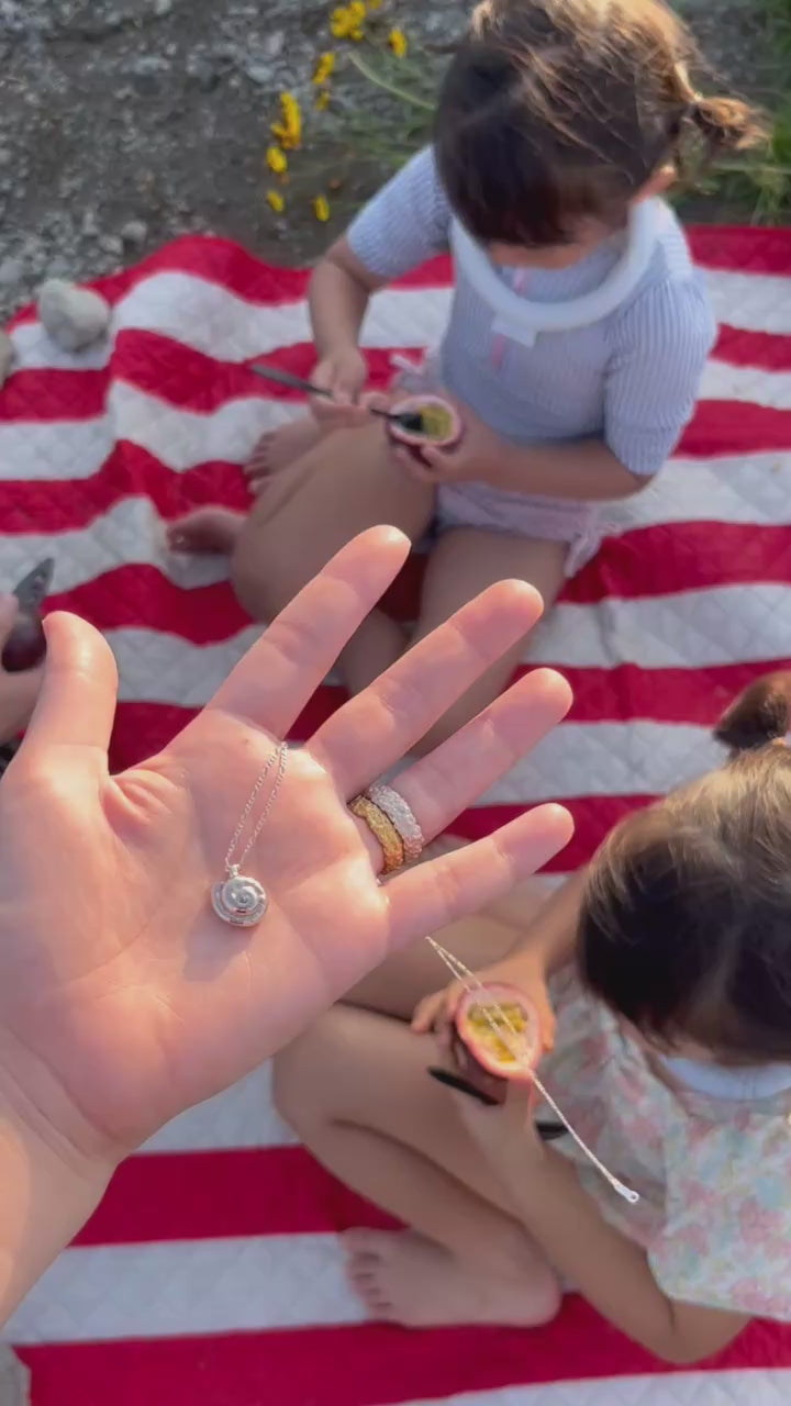 The surface is finished with a matte texture, subtly catching the light to create a soft, natural presence against the skin. Recycled Sterling Silver 925 is used for the metal, embodying a sense of renewal.