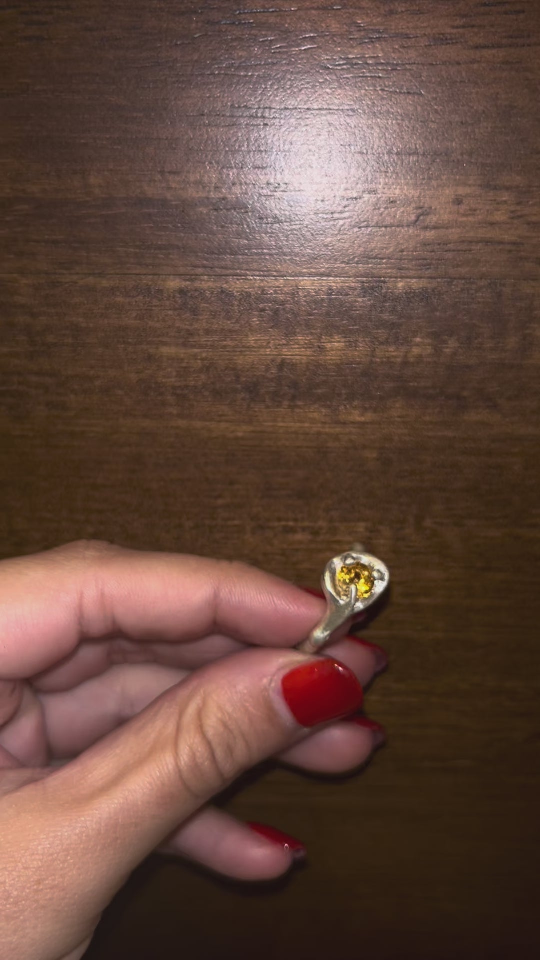 This ring features a golden natural citrine, gently cradled in a silver band that flows like melted metal.